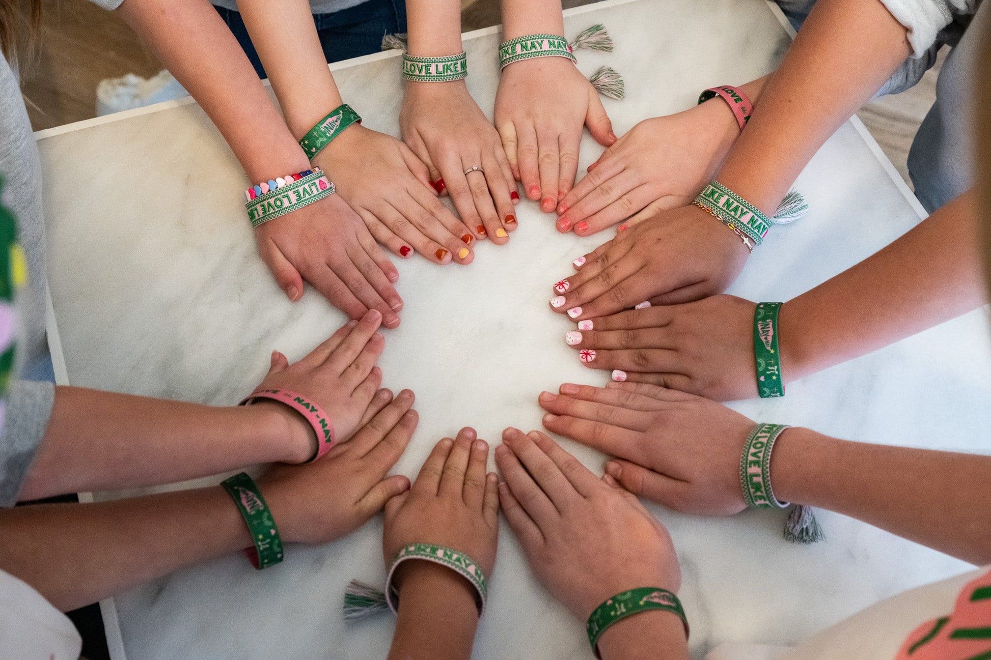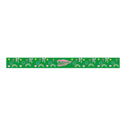 This reversible stretch bracelet features two spirited designs—one side in bright green with NayNay icons, and the other in soft pink with the Live Love Like NayNay message. Easy to wear and comfortable for all-day use, it’s a sweet everyday reminder of love and joy.